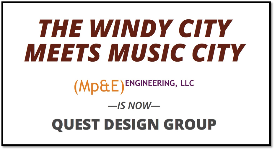 “Given their size, focus, location, and outstanding track record, I’m convinced MP&E Engineering will make a great addition to the QDG team,” states Michael Janis, President and CEO of Quest Design Group. “The business is doing well in both markets [Chicago and Sarasota]. Bringing Nashville on board should accelerate our growth even further.”